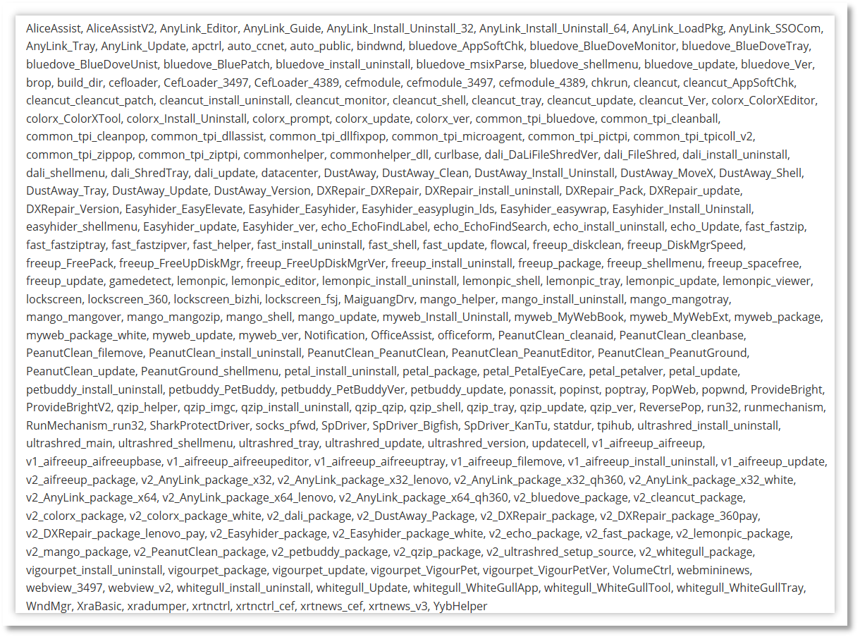 根据火绒安全情报中心的统计数据,大量软件包含本文所述的推广模块。下图中列表列出的软件被发现与本次威胁具有较强相关性(包括但不限于):
