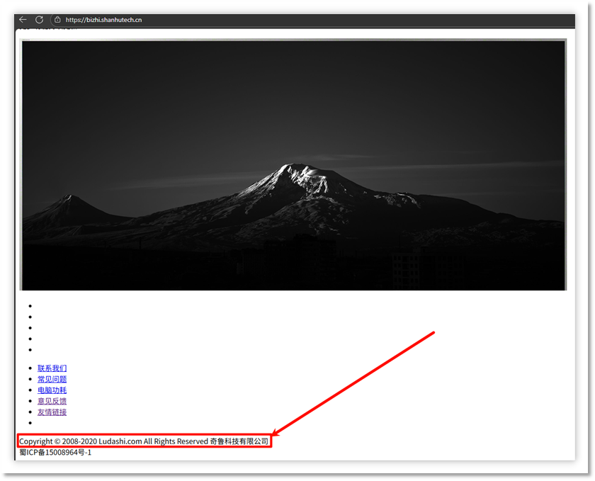 而当访问网站"bizhi.shanhutech.cn"时,会进入一个小鸟壁纸软件的下载页面,网站下方的版权文字显示属于"奇鲁科技有限公司"和"ludashi.com"。
