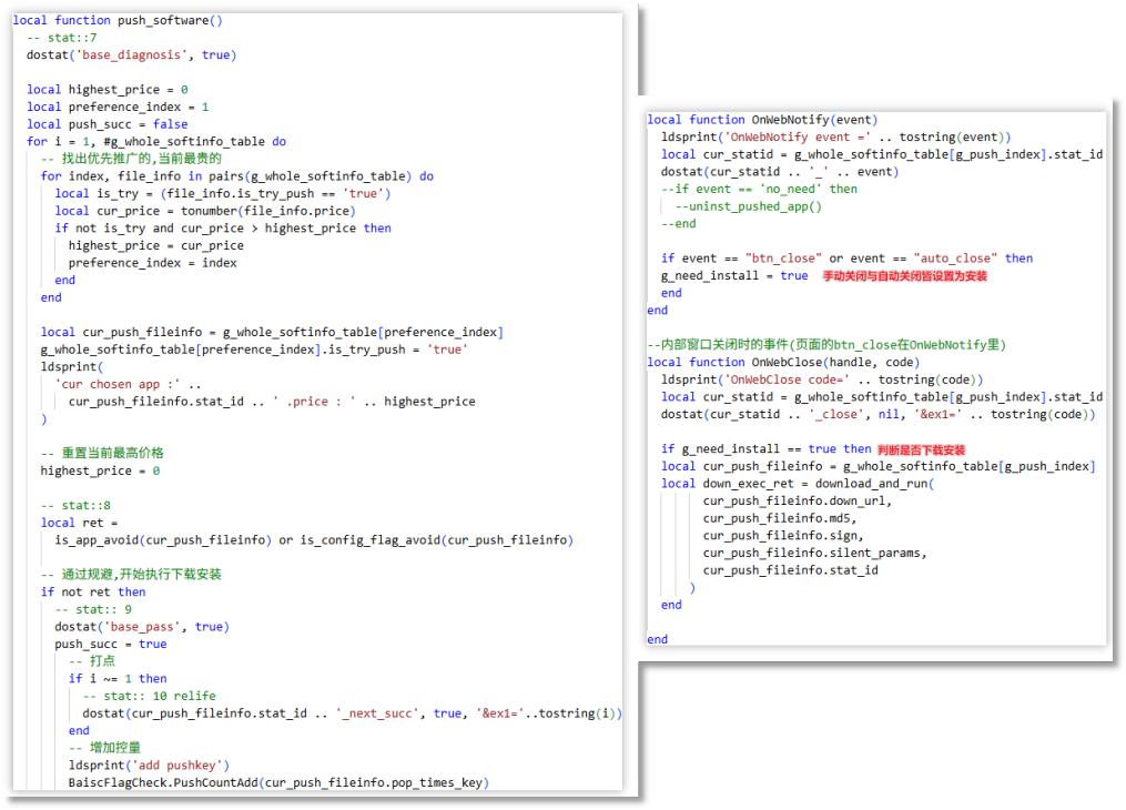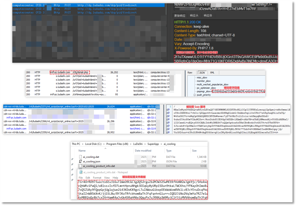 本次主要围绕鲁大师软件展开技术分析,并提出该系列推广软件的共性。在溯源过程中,我们发现小鸟壁纸等软件同样包含类似的推广模块,其中Lua脚本执行模块和云控配置请求模块是这些带有推广插件的软件的共同特征。