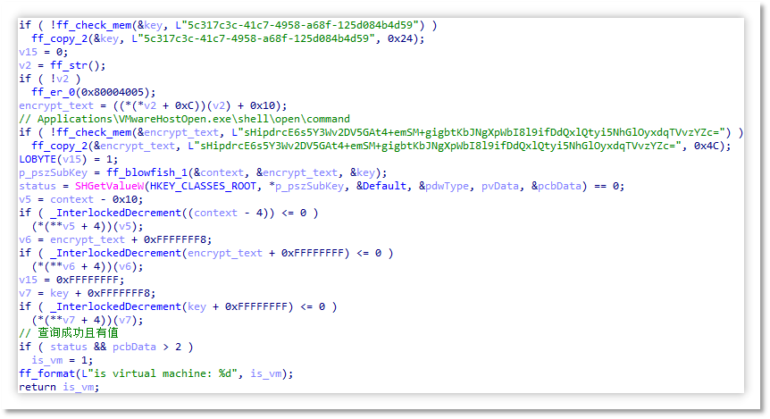 检测 HKEY_CLASSES_ROOTApplicationsVMwareHostOpen.exeshellopencommand 是否存在且默认值有效则会判断为虚拟机。
