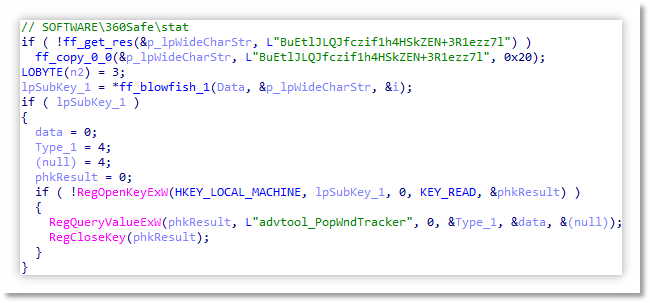 本次分析中,所有软件的推广模块基本采用相同的加密方式:使用 BlowFish 算法对原始数据加密,再通过 Base64 算法编码后进行数据收发。解密操作主要发生在以下场景: