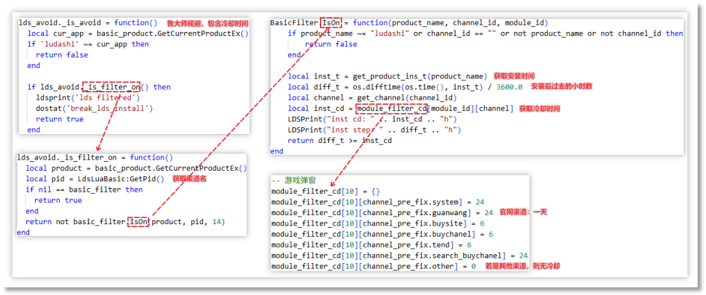 分析过程中发现,推广模块在获取云控配置时也会进行规避,根据用户地区和下载渠道筛选推广目标,避免向高风险用户投放从而规避可能的风险。