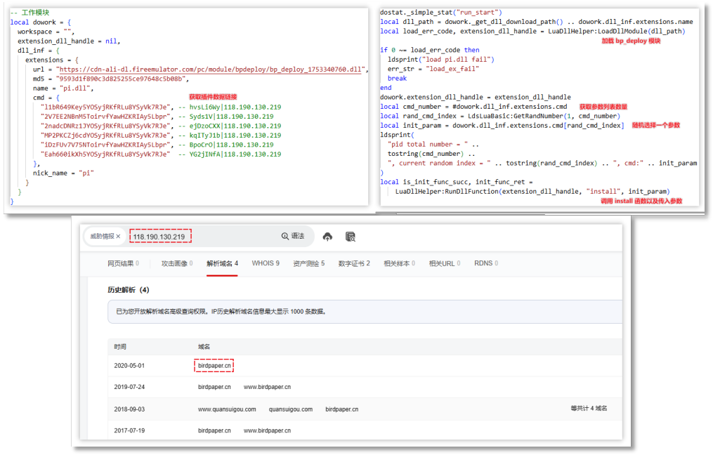 随后开始安装插件,利用的是插件安装模块(bp_deploy)中 install 导出函数,随后传入参数 hvsLi6Wy|118.190.130.219,以获取插件数据,随后发现该域名与小鸟壁纸相关。
