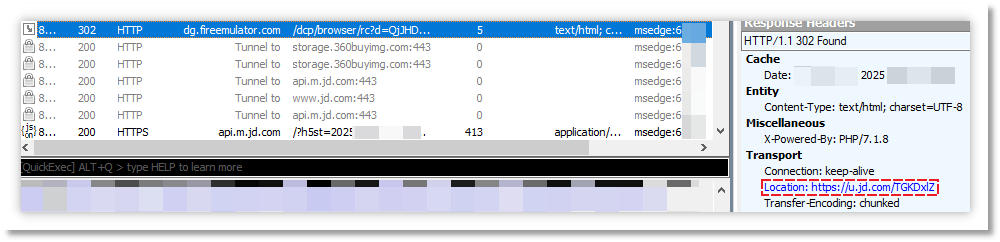还有京东和其他网址会通过 http://dg.fireemulator.com/dcp/browser/rc,获取重定向链接,即为京粉佣金推广链接。