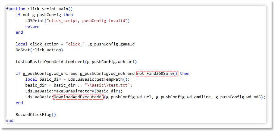 该类样本具备下载并加载任意DLL的能力。本次发现的云控配置即利用该功能分发浏览器插件安装模块,目前仅在鲁大师环境中观测到此类脚本。